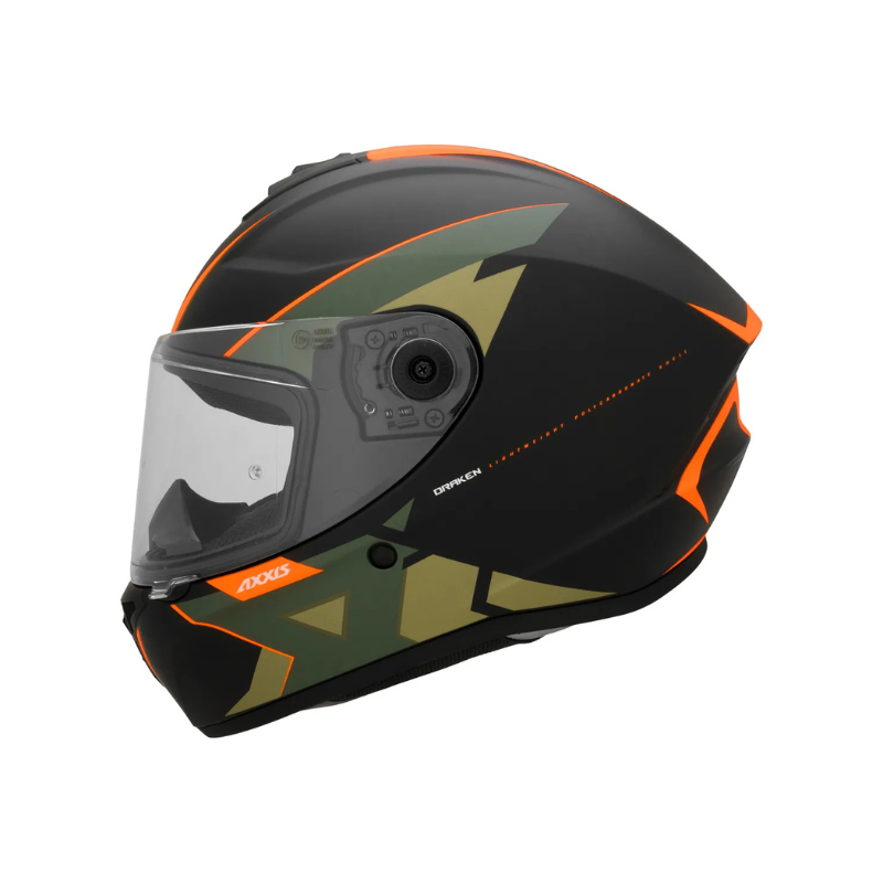 La marca Axxis Helmets muestra su pronunciado espíritu innovador y dinámico presentando el casco de moto integral Axxis Draken Incorpora su nueva pantalla MT-V-18C de 2.2 mm de grosor, que garantiza un amplio campo de visión durante la conducción. Pantalla fabricada en policarbonato óptico antirrayaduras con mecanismo de liberación rápido y sencillo de utilizar, incluso con los guantes puestos. Pinlok Maxvision (No incluido).